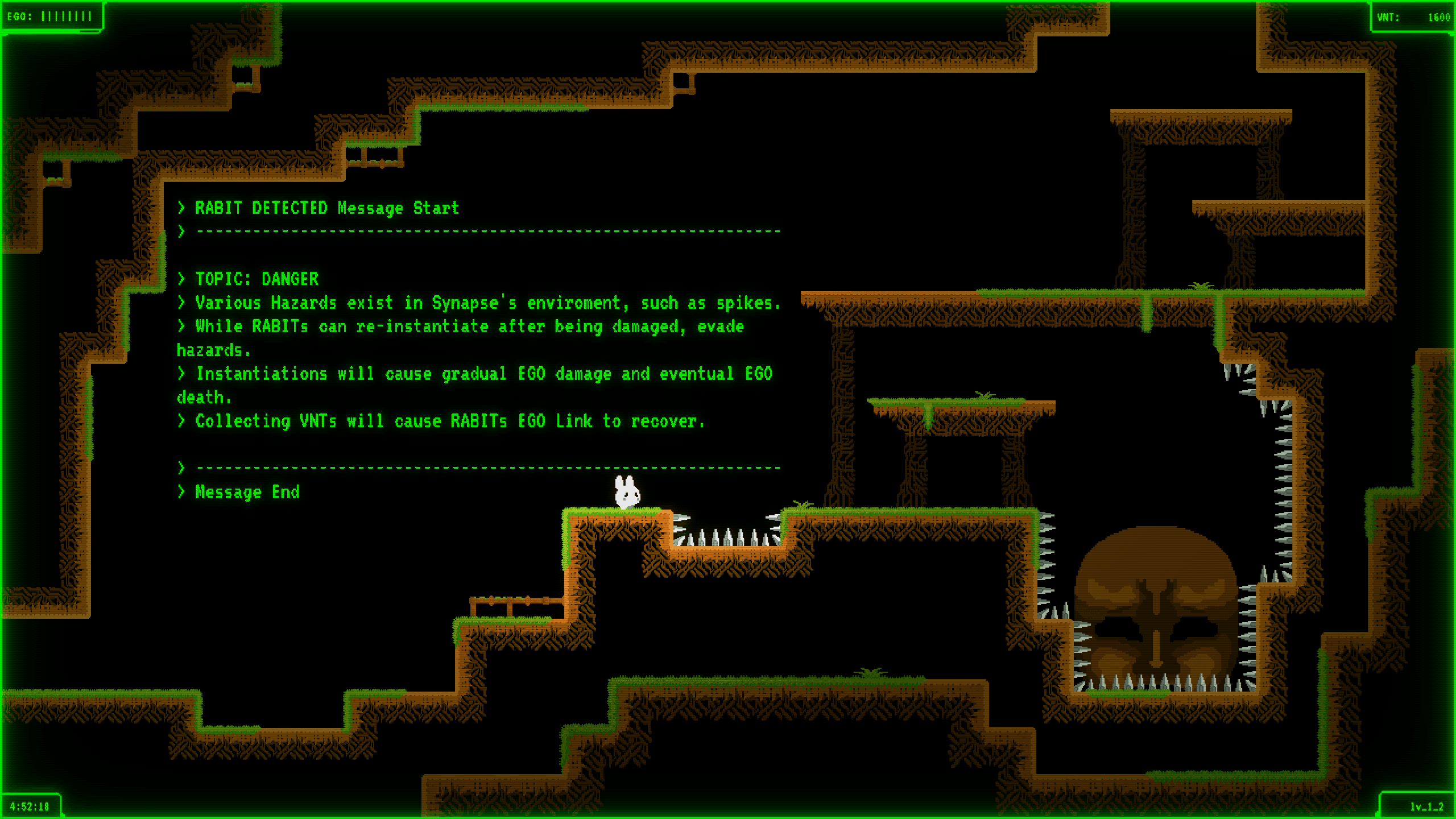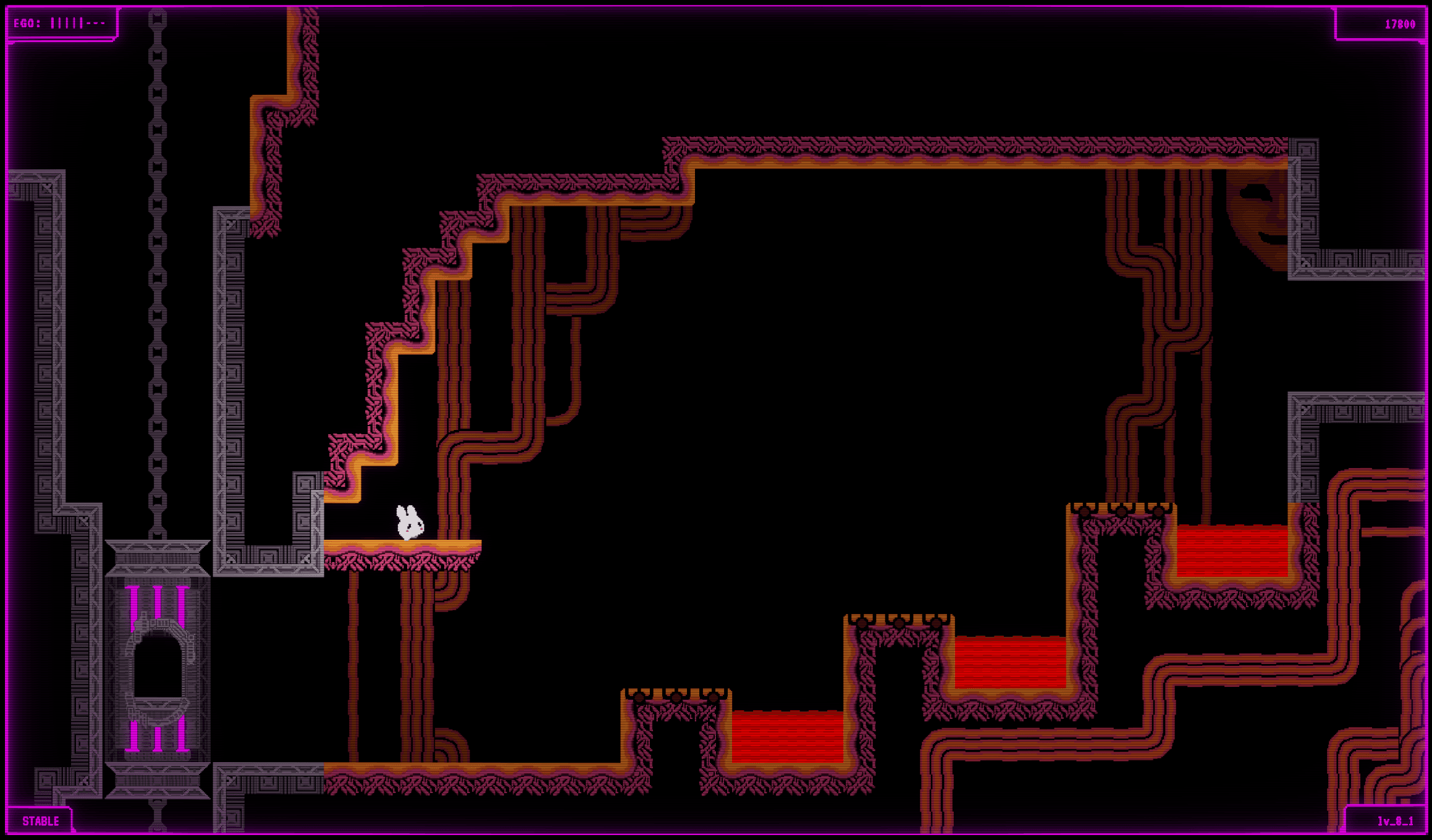 RABIT is an arcade style platforming game with retro graphics and a mysterious atmosphere. Its central mechanic is the ability to toggle certain objects on and off at the click of a button. This along with several other movement abilities allows for some devious and exciting platforming sections