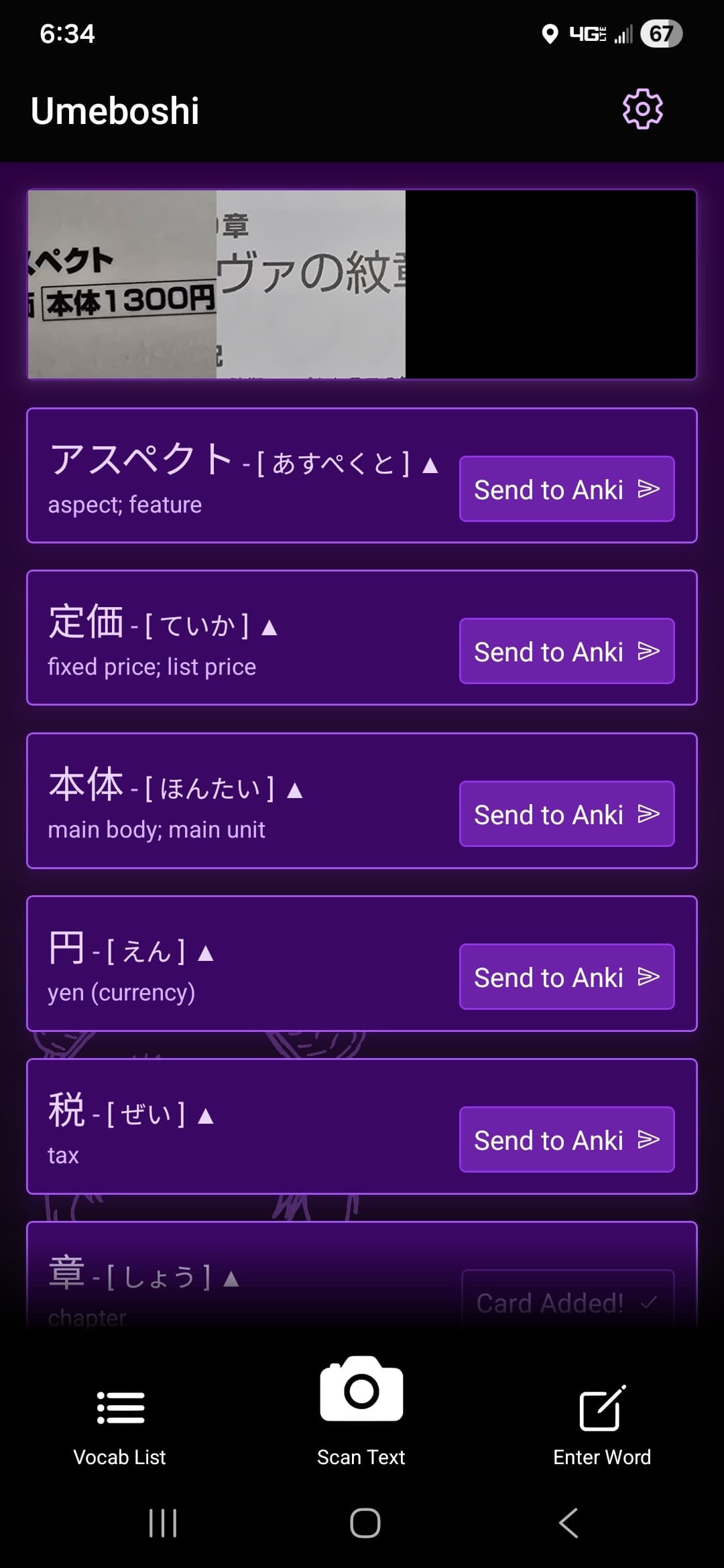 Umeboshi is an AI-powered translation tool for android created with React Native the Expo framework that uses the OpenAI API to generate detailed Japanese translation data from either single words or images of text. With a single tap, users can turn this data into beautifully formatted AnkiDroid (A popular spaced repetition flashcard application) flashcards, complete with example sentences and pronunciation information.